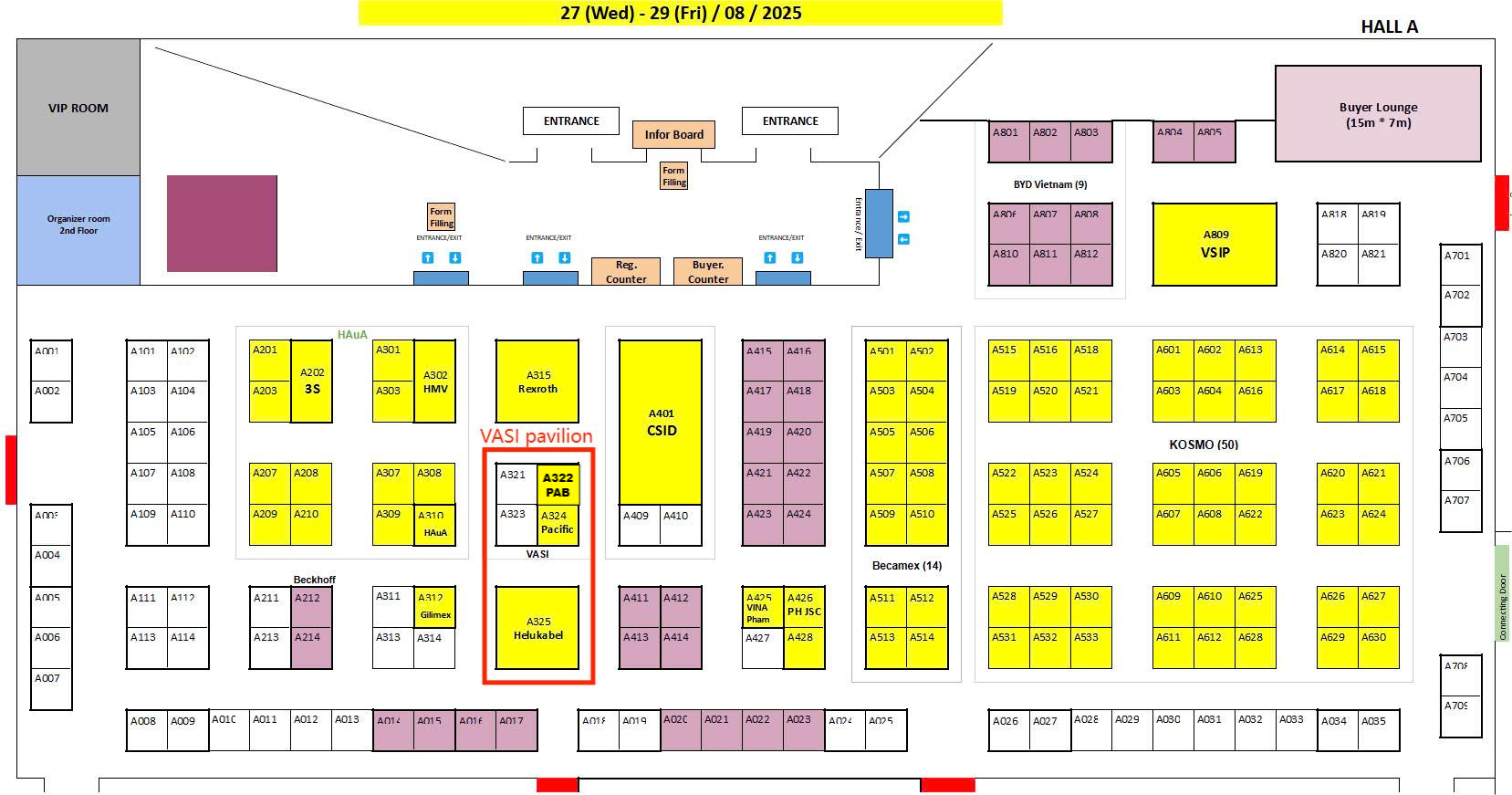 - Gian hàng tiêu chuẩn: 22.000.000 vnđ/9m2 (Cụm 06 gian liền kề: A319 -> A324, doanh nghiệp đăng ký sớm được ưu tiên thứ tự chọn vị trí trong cụm gian)