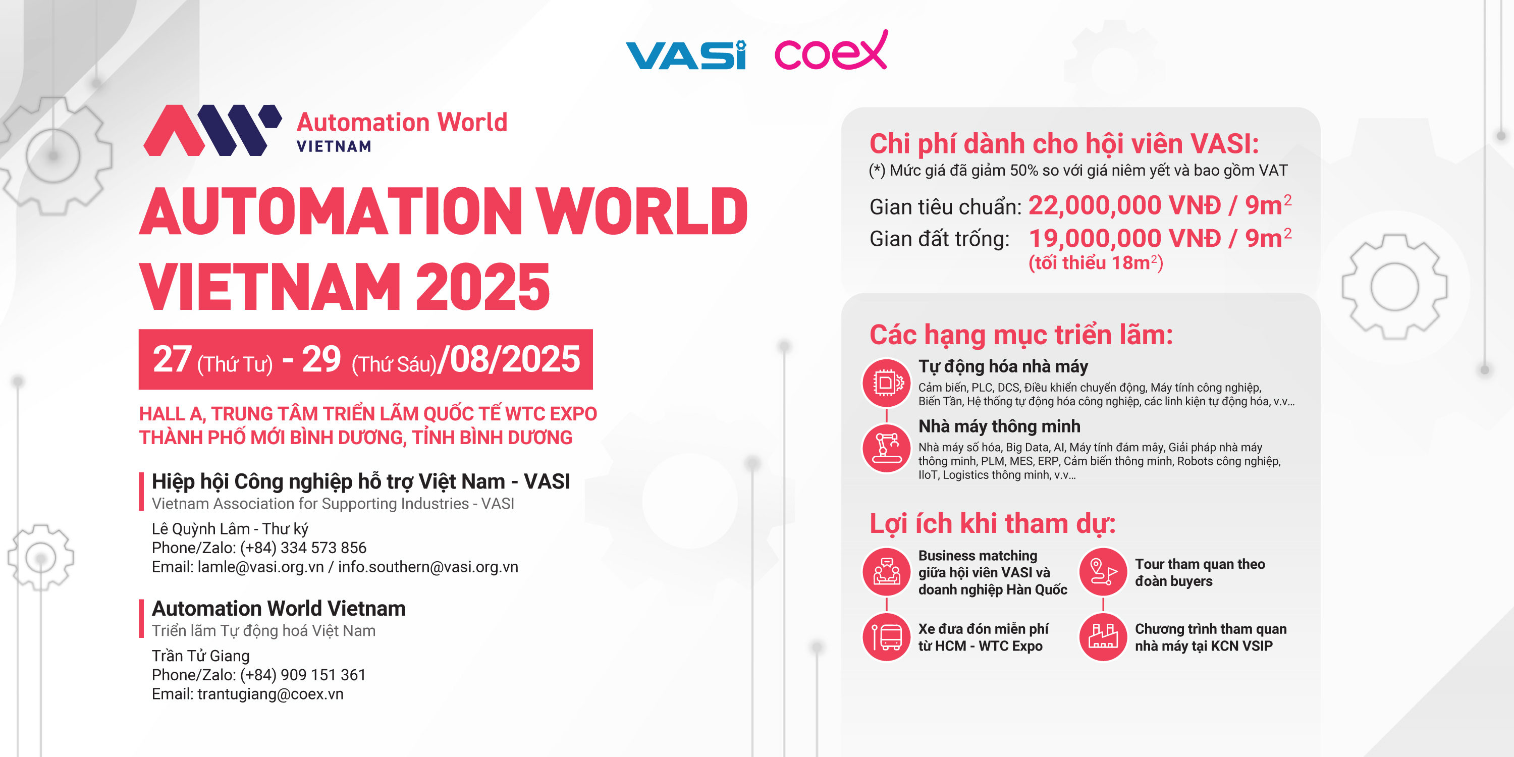 VASI kính mời quý hội viên đăng ký tham gia Khu gian hàng VASI tại Triển lãm Automation World Vietnam (AWV 2025) – Triển lãm Tự động hóa Thế giới tại Việt Nam.