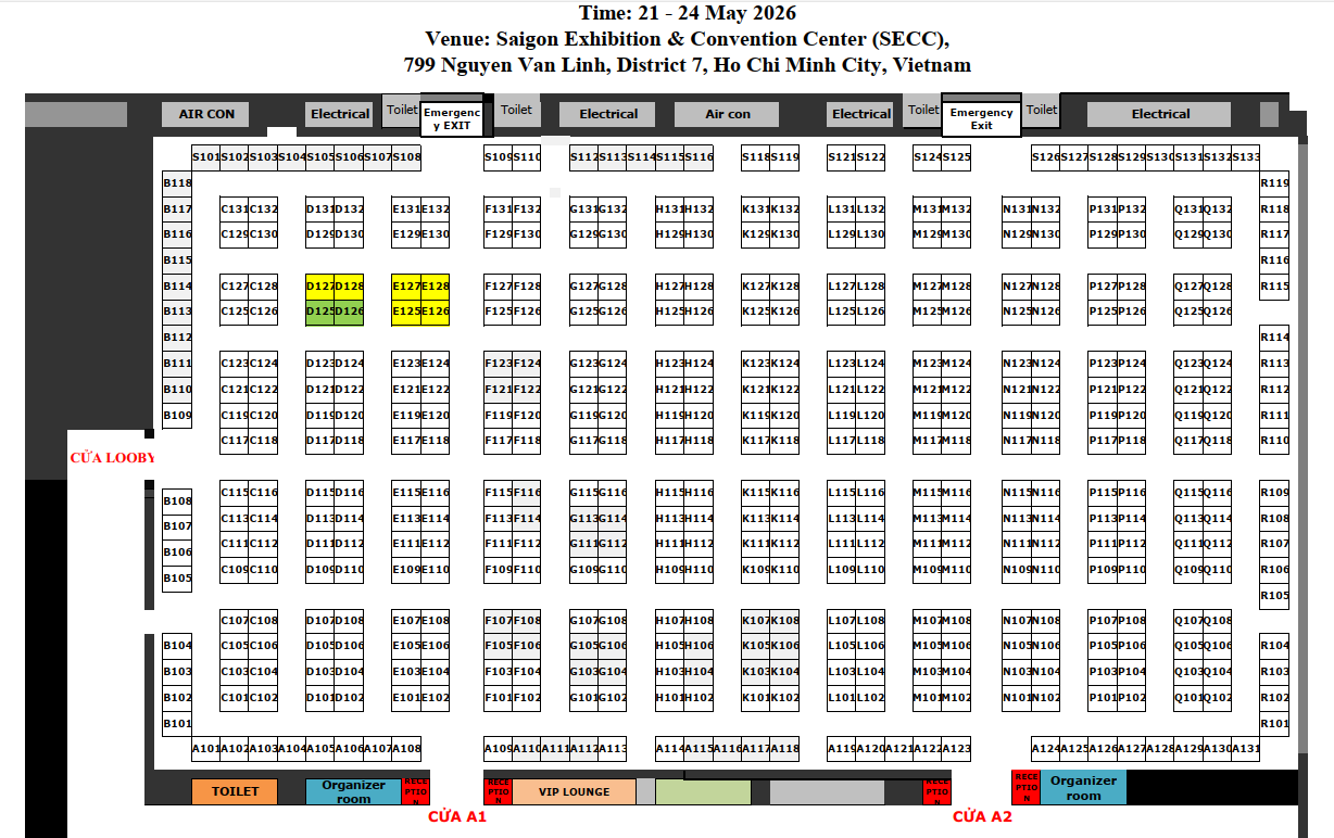 • Địa điểm: Trung tâm Hội chợ và Triển lãm Sài Gòn – SECC 799 Nguyễn Văn Linh, Phường Tân Mỹ, TP. Hồ Chí Minh