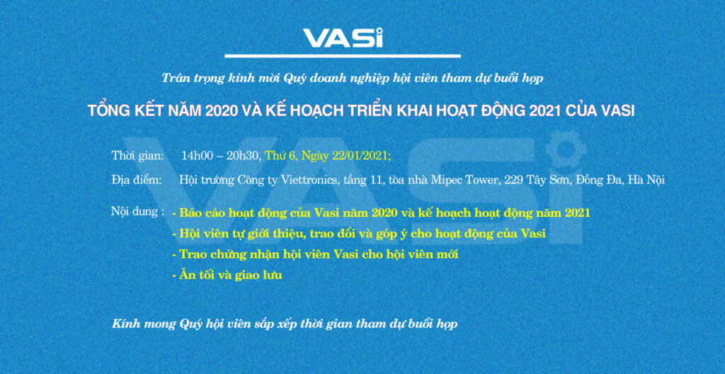 Ngày 22/01/2021, Hiệp hội Công nghiệp hỗ trợ Việt Nam (VASI) đã tổ chức tổng kết hoạt động của năm 2020 và đề ra kế hoạch hoạt động của năm...
